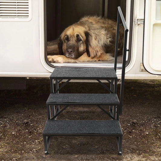 3-step Porch Steps with Handrails and Foot Pads and Soft Cushions Non-slip Portable Step Stool Home Decor for Travel Trailer