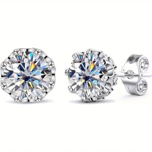 18K White Gold Plated Brilliant Cut Cubic Zirconia Stud Earrings Unisex 8 Prong 8 Zirconia Sterling Silver Posts Hypoallergenic