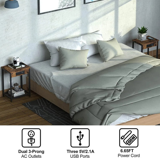 Set of 2 Side End Table Nightstand w/USB Ports & Power Outlets Bedroom Office