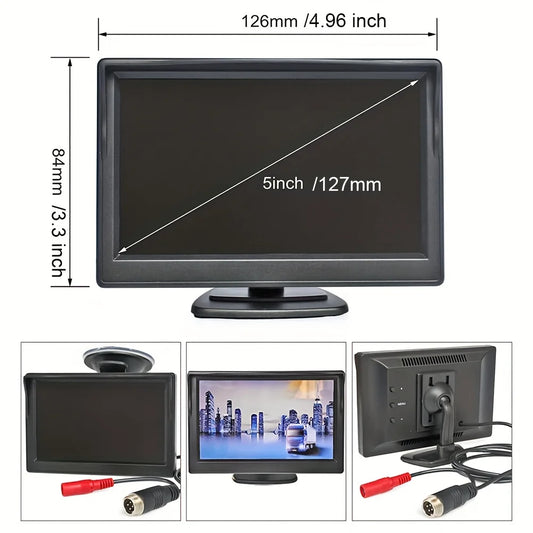 Car Rear View Backup Camera Kit 5 inch Monitor 4Pin for RV Bus Truck 12V/24V with Double Mount Easy Installation