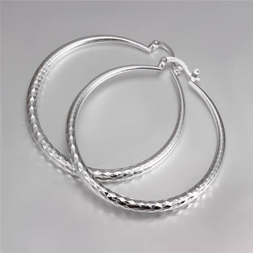 Silvery Big Textured Hoop Earrings Women's Jewelry Silver Plated Female Accessories 1Pair