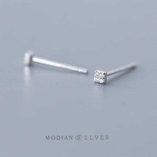 Modian 100% 925 Sterling Silver Small Cute Square Clear CZ Stud Earrings Fashion Tiny Crystal Studs Ear For Women Jewelry Gift