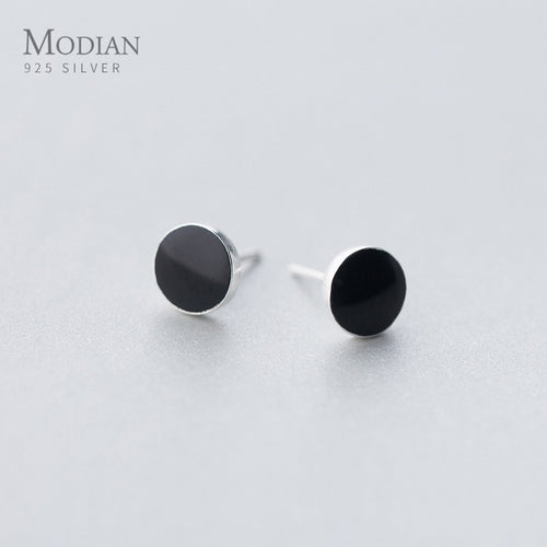 Modian Genuine 925 Sterling Silver Round Black Enamel Stud Earrings for Women Girl Fashion Classic Earrings Jewelry Gift