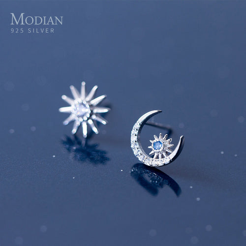 Modian Authentic 925 Sterling Silver Rose Gold Color Moon And Sun Stud Earrings for Women Jewelry Ear Pins Gifts