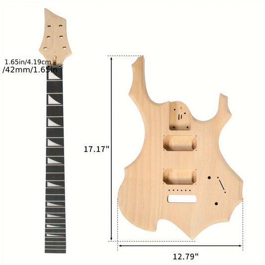 DIY 6 String Flame Shaped Style Electric Guitar Kits with Mahogany Body, Maple Neck and Accessories