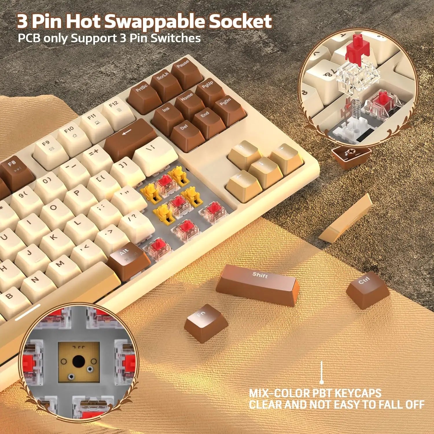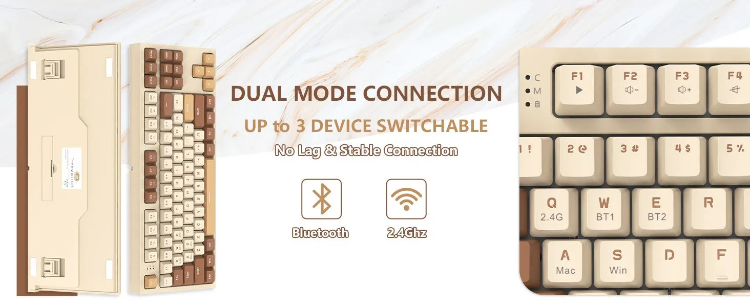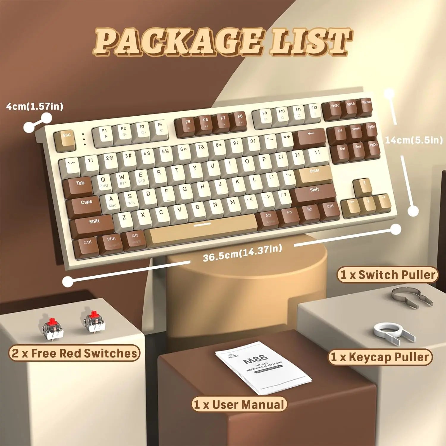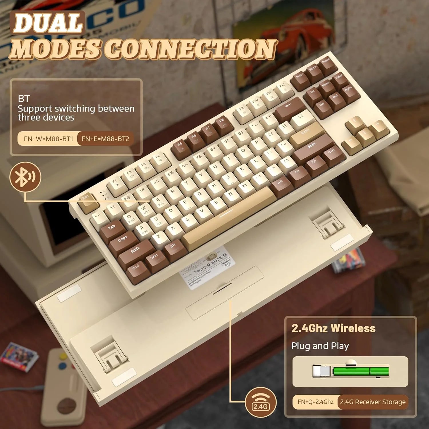 M88 Wireless Mechanical Keyboard,87 Keys QWERTY Layout TKL Hot Swappable Keyboard, Bluetooth/2.4Ghz Dual Mode 2-in-1 Receiver