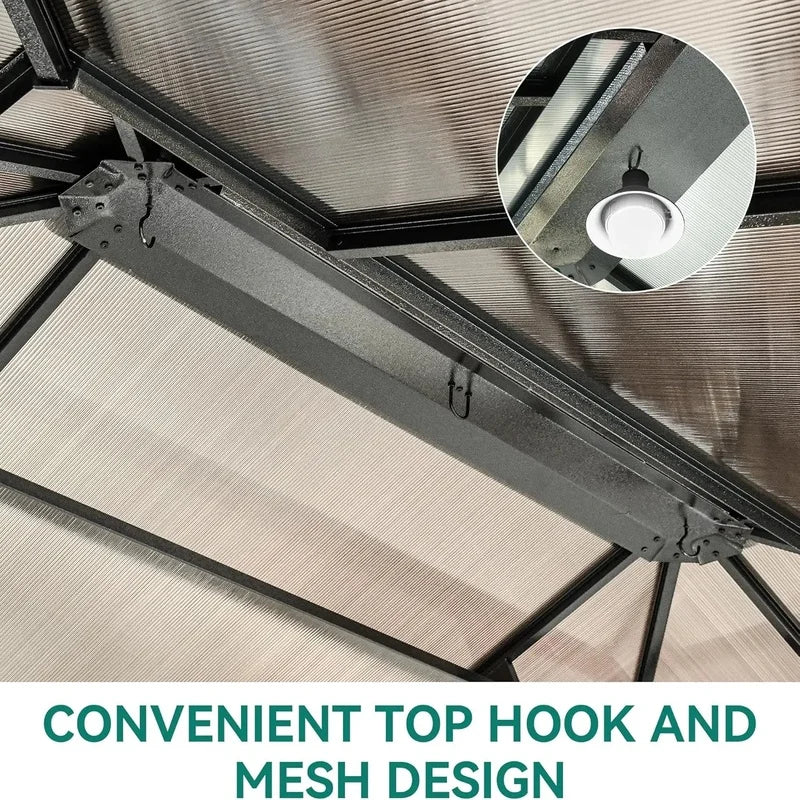 10x12FT Hardtop Gazebo Outdoor Polycarbonate Patio Canopy with Double Top, Galvanized Iron and Aluminum Structure, Garden Tent