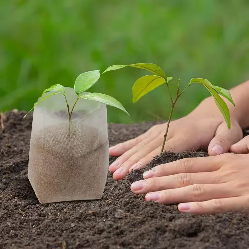 Seedling Bags 100 Pack Degradable Non-Woven Nursery Bags Fabric Seedling Grow Bags Plant Pouch For Garden Agricultural Supply