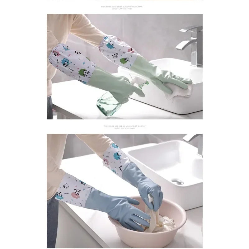 Women's Kitchen Gloves - Durable, Extended Waterproof Rubber Gloves for Dishwashing, Cleaning, Laundry & Household Chores - Comf