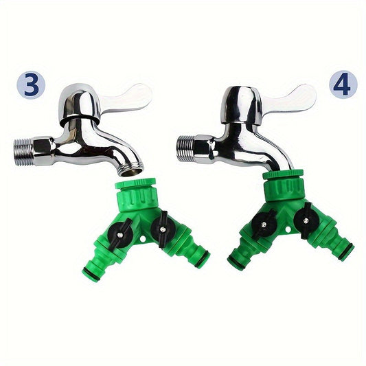 2Pcs 2-Way Plastic Garden Hose Y Connector With On/ Off Valves, 1/ 2" & 3/ 4" Female Thread Tap Adapter, Quick Joint Kit, Water Splitter Accessory, Green