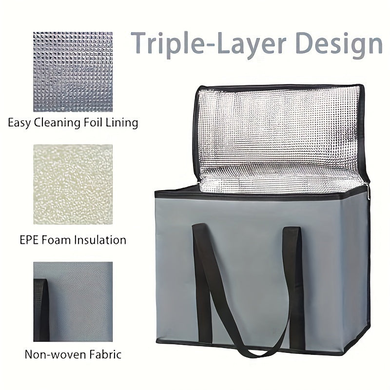 2 Pack XXL Cooler Bag And Insulated Grocery Bags For Food Delivery, Collapsible Cooler. Reusable Shopping Bags For Groceries With Zippered Top, Foldable, Heavy-Duty, Stands Upright