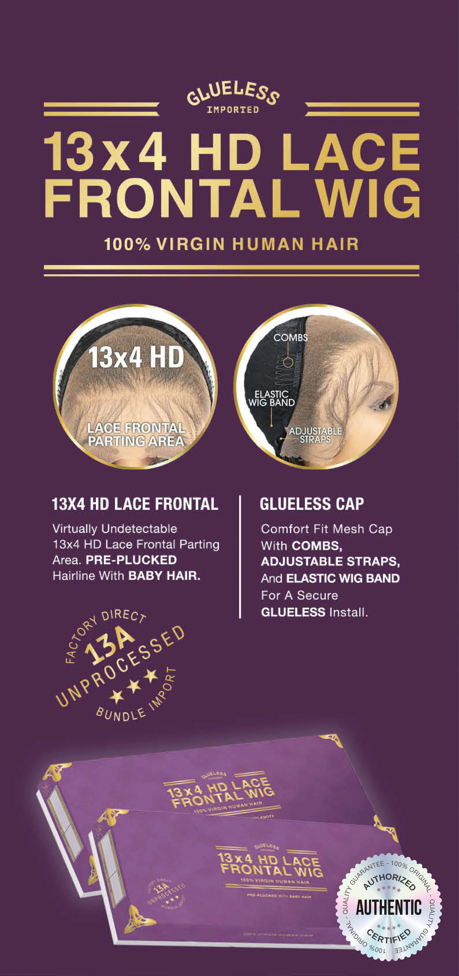 Sensationnel Unprocessed Virgin Human Hair 13X4 HD Lace Frontal Wig Glueless 13A Bohemian20"&28" - Long Curly Style, Tangle Free
