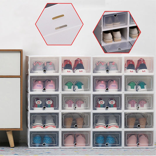 Shoe Boxes Clear Plastic Stackable, 20 Pack Premium Shoe Organizer Storage Foldable Sneaker Shoe Rack Containers