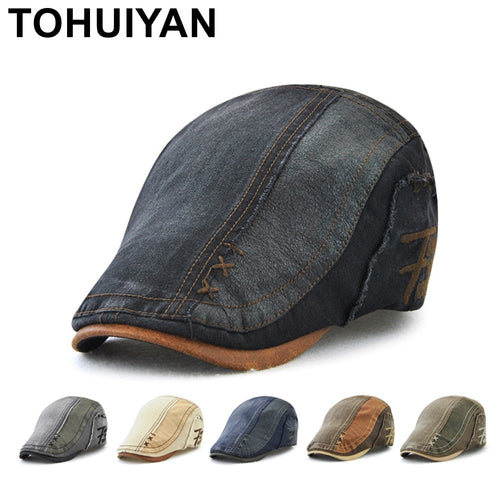 New Denim Cotton Beret Men Vintage Newsboy Cap Spring Autumn Casual Women Visor Fashion Cool Flat Hat Adjustable Berets