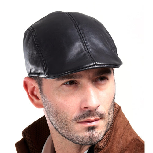 Men's Fashion Paperboy Style 100% Genuine Leather Cap Newsboy Caps Beret Head Cover Cabbie Hat Golf Hats Sheepskin Leather