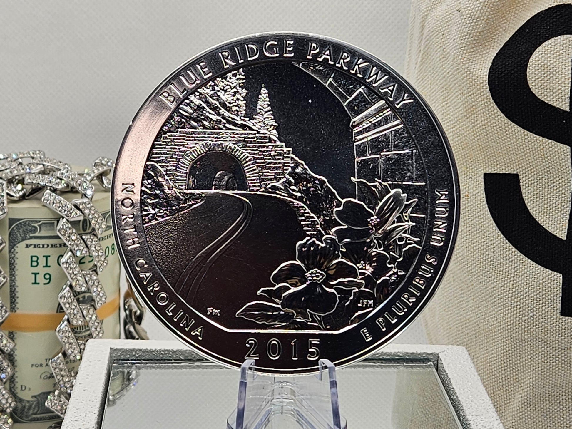 The 2015 5oz ATB Everglades / Florida Silver Coin is a stunning piece minted by the US Mint. This coin features a business strike type and has a fineness of 0.999, making it a valuable addition to any coin collection. With a precious metal content of 5oz of silver, this coin celebrates the beauty of the Blue Ridge Parkway in the United States, making it a cherished item for collectors and investors alike.