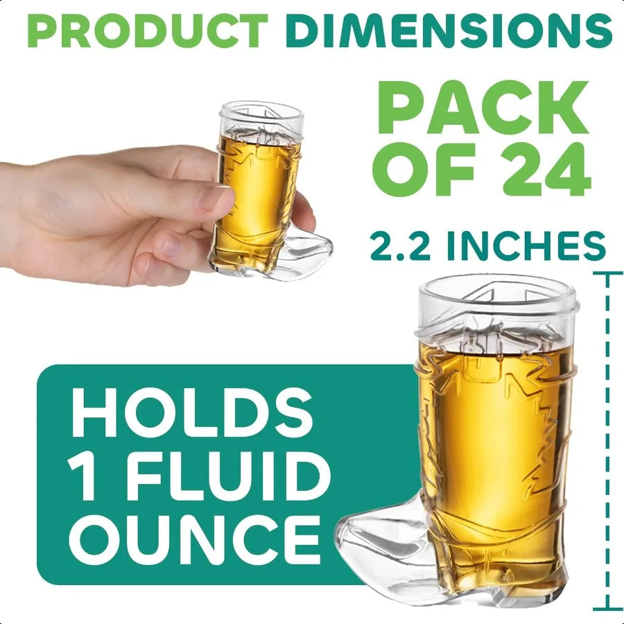 24 Mini Boot Shot Glasses 1 oz Reusable and Disposable Clear Plastic Shot Cups for Cowboy Cowgirl Themed Parties Decorations an