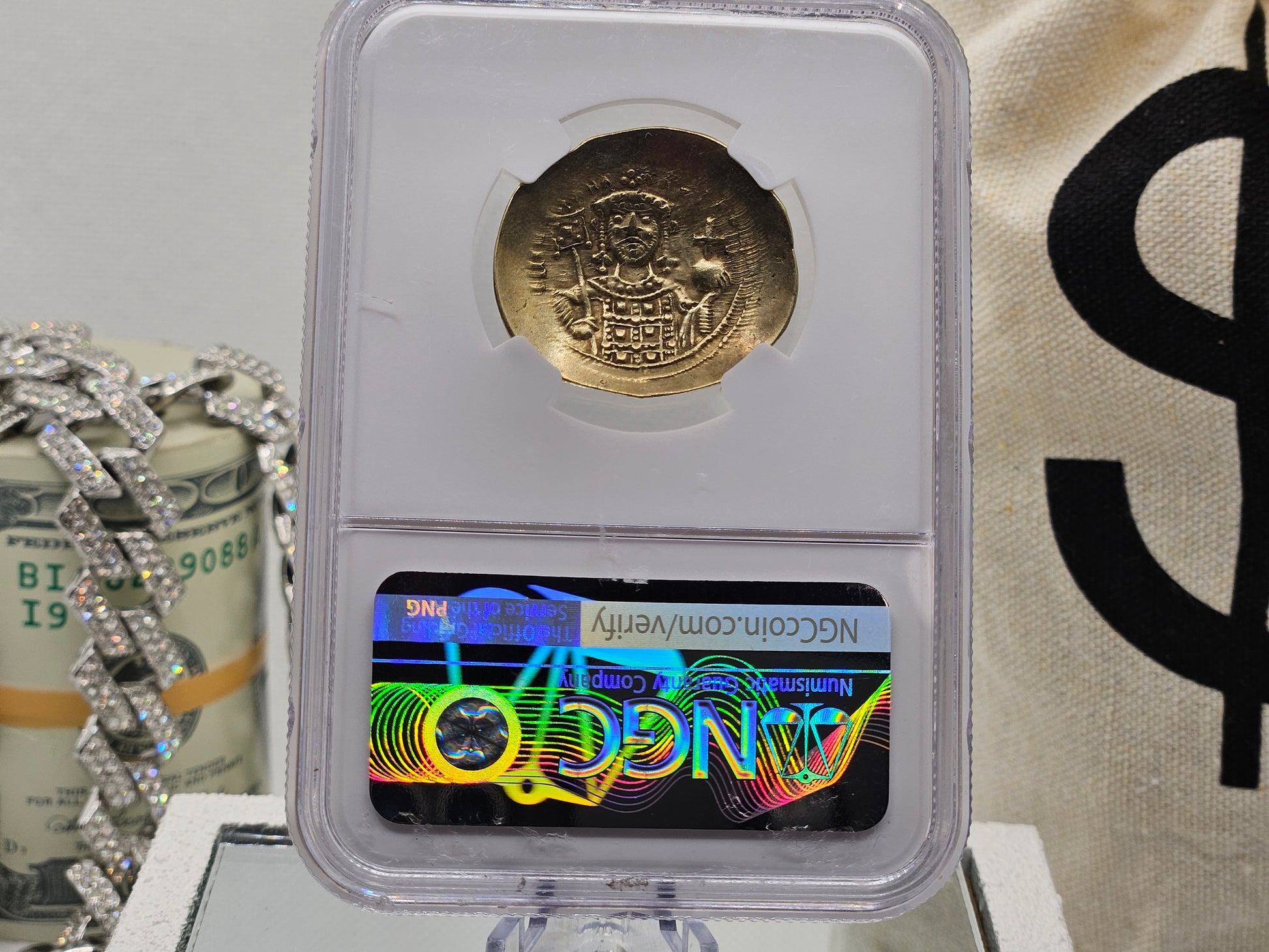 The product is a Byzantine Empire gold coin featuring Michael VII, minted between AD 1071-1078. It is certified by NGC and is uncleaned, making it a rare find for collectors interested in ancient Byzantine coins. This particular coin has a sense of urgency and excitement surrounding its ownership history, as it is being marketed as a scare item with a captivating story. Its historical significance and unique status within the Byzantine Empire make it a valuable and sought-after piece for numismatists.