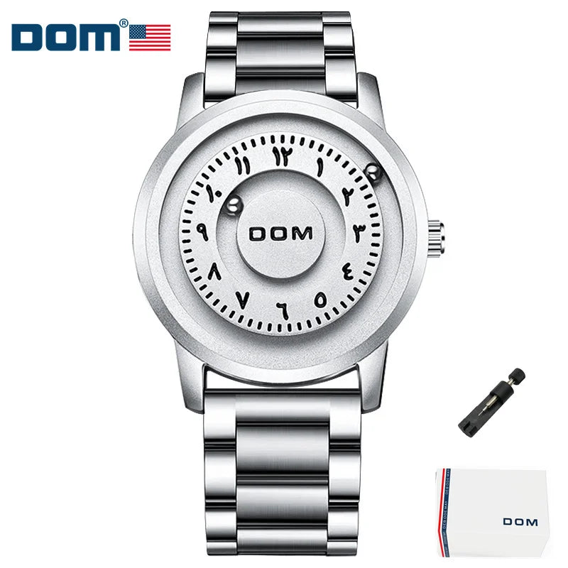 DOM 1769 Man Watch Creative Silver Stainless Steel Scrolling Beads Quartz Watches for Men Male Magnetic Force Life Waterproof