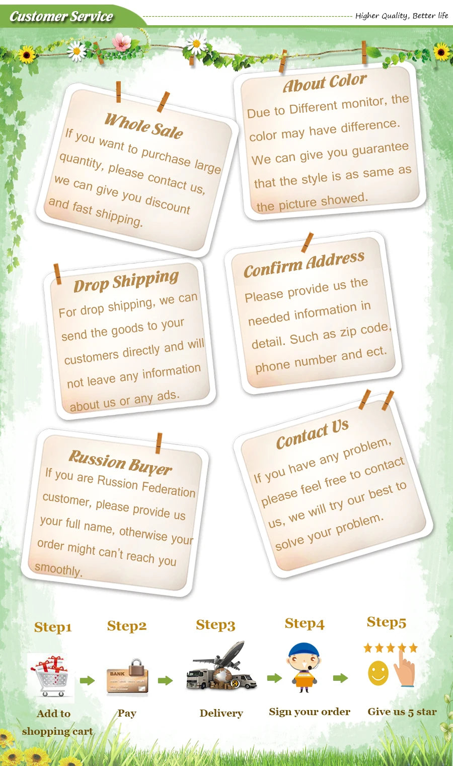 The cost and delivery time of your order are estimated online at the checkout. The estimation is performed according to the weight of items and their destination. Shipping cost only $4.99 - It's FREE for purchases above $49.99