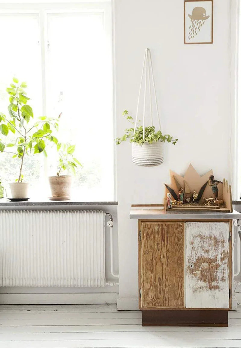 Garden Hanging Planter Woven Plant Storage Basket Indoor Outdoor Flower Holder Home Balcony Ornaments Flower Pot Patio Decor