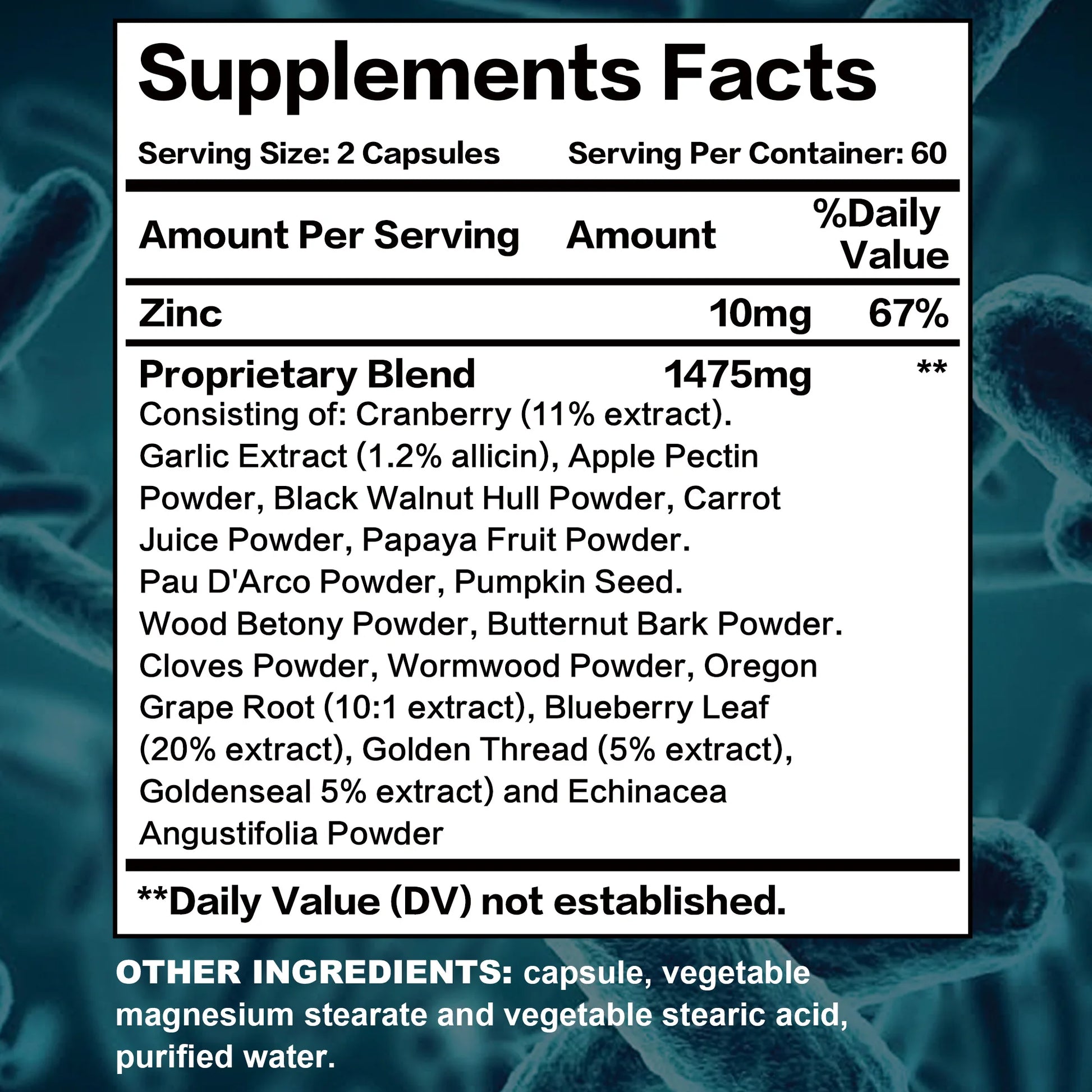 Ingredients: Cranberries, garlic, black walnut shells, cloves, zinc