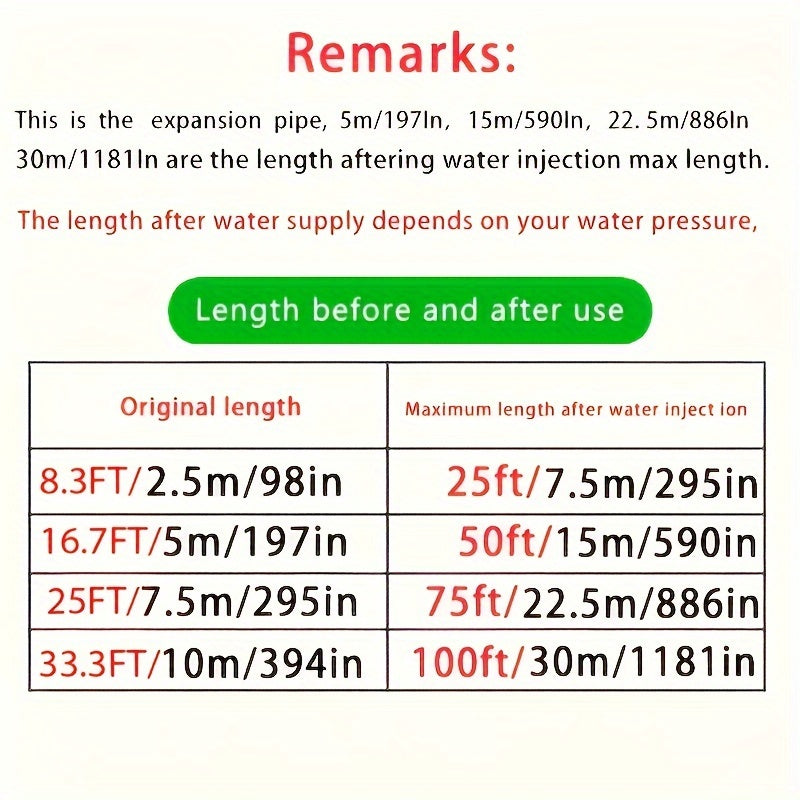 Super-Duty 3/4 Expandable Garden Hose - Magic Flexible & High-Pressure Resistant - Ideal for Car Wash & Lawn Irrigation - Telescopic Design, 4 Sizes, 2 Colors, American Standard
