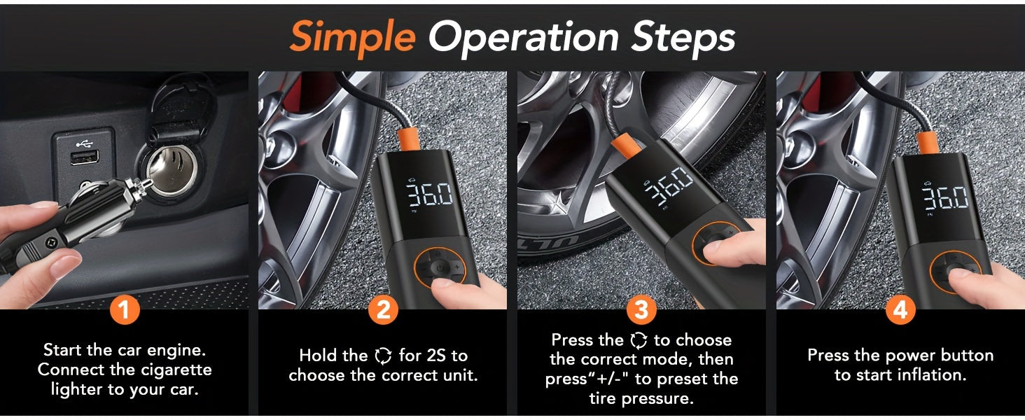 Tire Inflator Portable Air Compressor, 12V DC Auto Air Pump for Car Tires, 150PSI Electric Tire Pump with Digital Pressure Gauge, LED Light for Car Motorcycle Bike Ball, Car Accessories, for DC only.