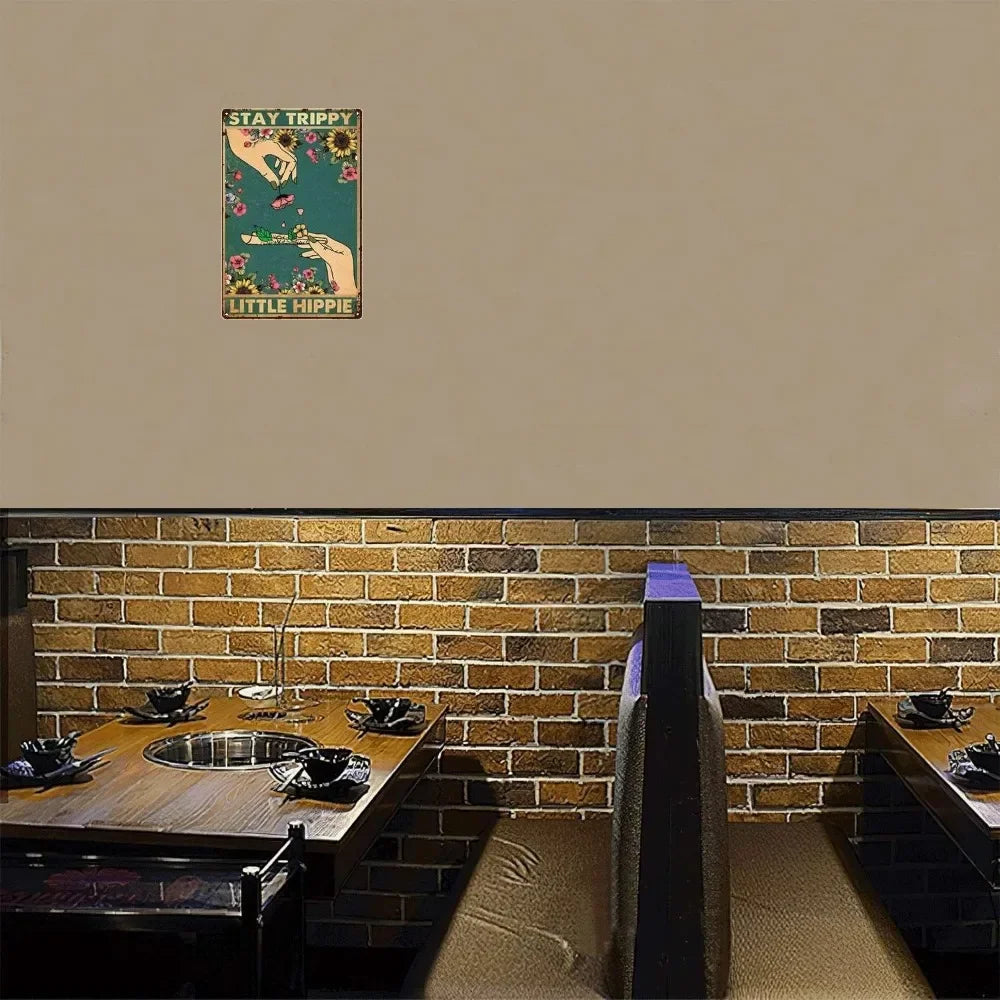 Trippy Little Hippie Tin Sign | Floral Weed Art Poster | Vertical 8x12 Inch Wall Decor | Great Gift for Hippie Lovers