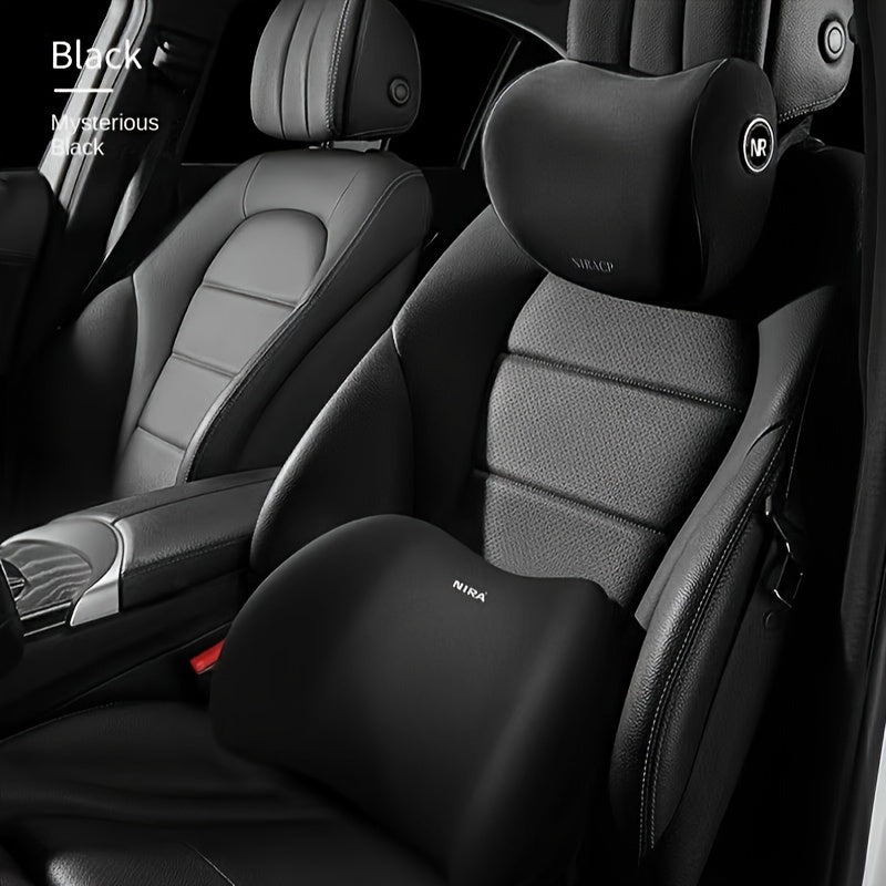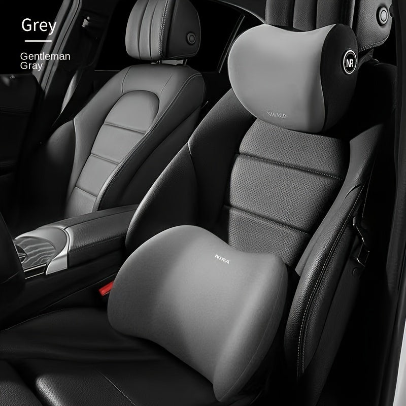 Ultimate Comfort Car Headrest Pillow and Lumbar Support Cushion Set - Ergonomic Design for Neck and Shoulder Protection, Breathable Polyester Fiber Surface, Universal Fit for Long Drives, Perfect Car Accessories for Road Trip